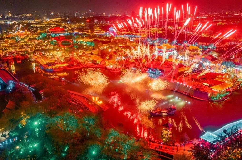 煙火氣十足的大宋不夜城。大宋不夜城的煙火氣在琳瑯滿目的文創(chuàng)商品中,在色香味俱全的美味小吃里,在熙熙攘攘的熱鬧人群里,更是在《火神沖浪》、《打鐵花之盛世大宋》的火光中、煙花里……
