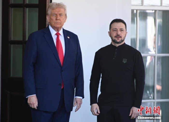 當?shù)貢r間2月28日,特朗普在白宮迎接澤連斯基抵達。中新社記者 陳孟統(tǒng) 攝