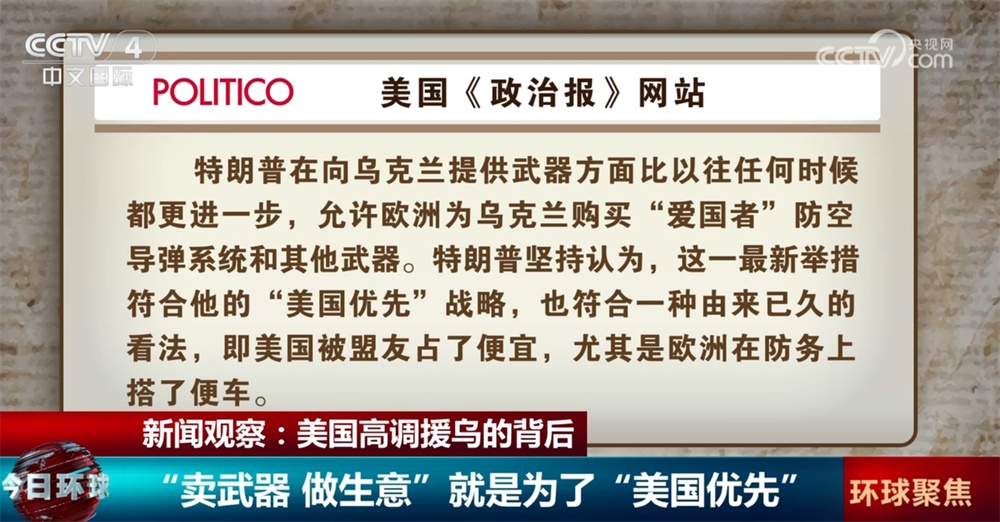 央視網(wǎng)消息:“賣(mài)武器,做軍火生意”,這也是美國(guó)總統(tǒng)特朗普近兩天一再?gòu)?qiáng)調(diào)的,他稱(chēng)通過(guò)北約向?yàn)蹩颂m提供“愛(ài)國(guó)者”系統(tǒng)等武器,符合其一貫堅(jiān)持的“美國(guó)優(yōu)先”原則。美國(guó)國(guó)防部分析師直言,這么做還可以進(jìn)一步消耗其他北約國(guó)家的資源。
