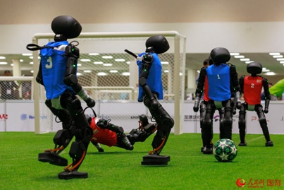 人形機器人足球比賽現(xiàn)場。人民網 克勞迪婭·馬爾提尼攝