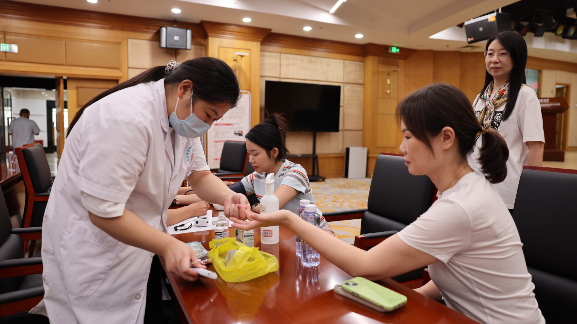 簽約儀式后,備受期待的義診活動(dòng)隨即展開。湖北省中醫(yī)院汪新華副主任醫(yī)師率領(lǐng)東湖社區(qū)衛(wèi)生服務(wù)站的醫(yī)護(hù)團(tuán)隊(duì),為企業(yè)職工帶來了專業(yè)、貼心的健康服務(wù)。義診臺(tái)前,醫(yī)護(hù)人員細(xì)致地為職工們測量血壓、血糖,通過傳統(tǒng)中醫(yī)“望聞問切”進(jìn)行體質(zhì)辨識(shí),并針對(duì)個(gè)體情況提供個(gè)性化的健康咨詢和敷貼服務(wù),現(xiàn)場互動(dòng)踴躍,好評(píng)不斷。