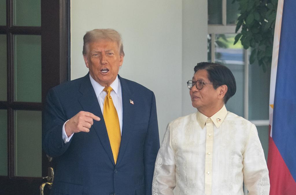 7月22日,美國總統(tǒng)特朗普(左)在華盛頓白宮歡迎到訪的菲律賓總統(tǒng)馬科斯。新華社記者 胡友松 攝