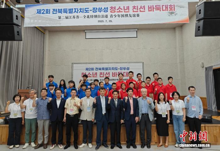 當?shù)貢r間7月29日,第二屆江蘇省—全北特別自治道青少年圍棋友誼賽在韓國全州市舉行。圖為活動合影。中國駐光州總領(lǐng)事館 供圖
