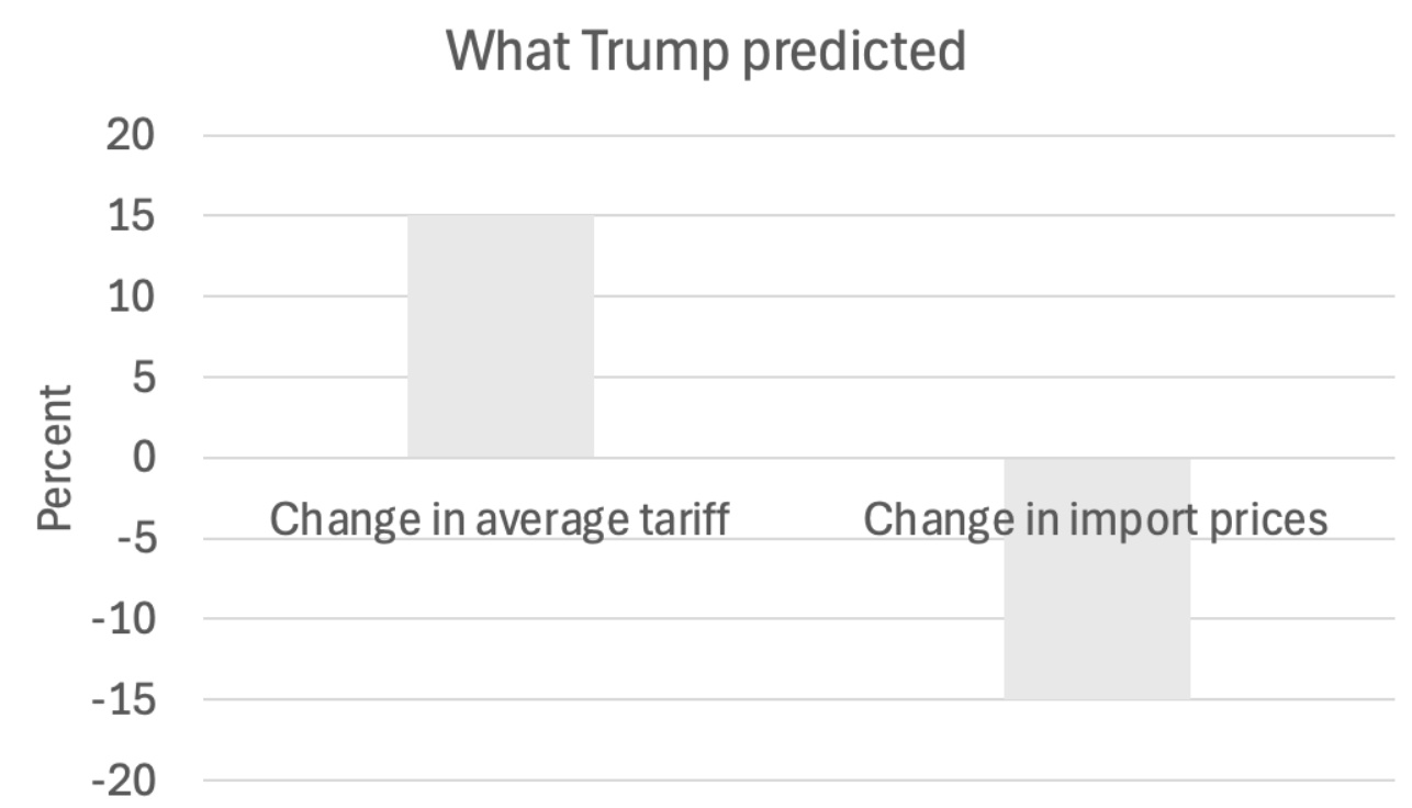 克魯格曼曬出數(shù)據(jù)稱(chēng),如果真按美國(guó)政府所說(shuō),關(guān)稅由外國(guó)承擔(dān),美國(guó)買(mǎi)主不受影響,那商品進(jìn)入美國(guó)的價(jià)格應(yīng)當(dāng)降低,以抵消加征的關(guān)稅,這樣才能讓物價(jià)和之前持平。