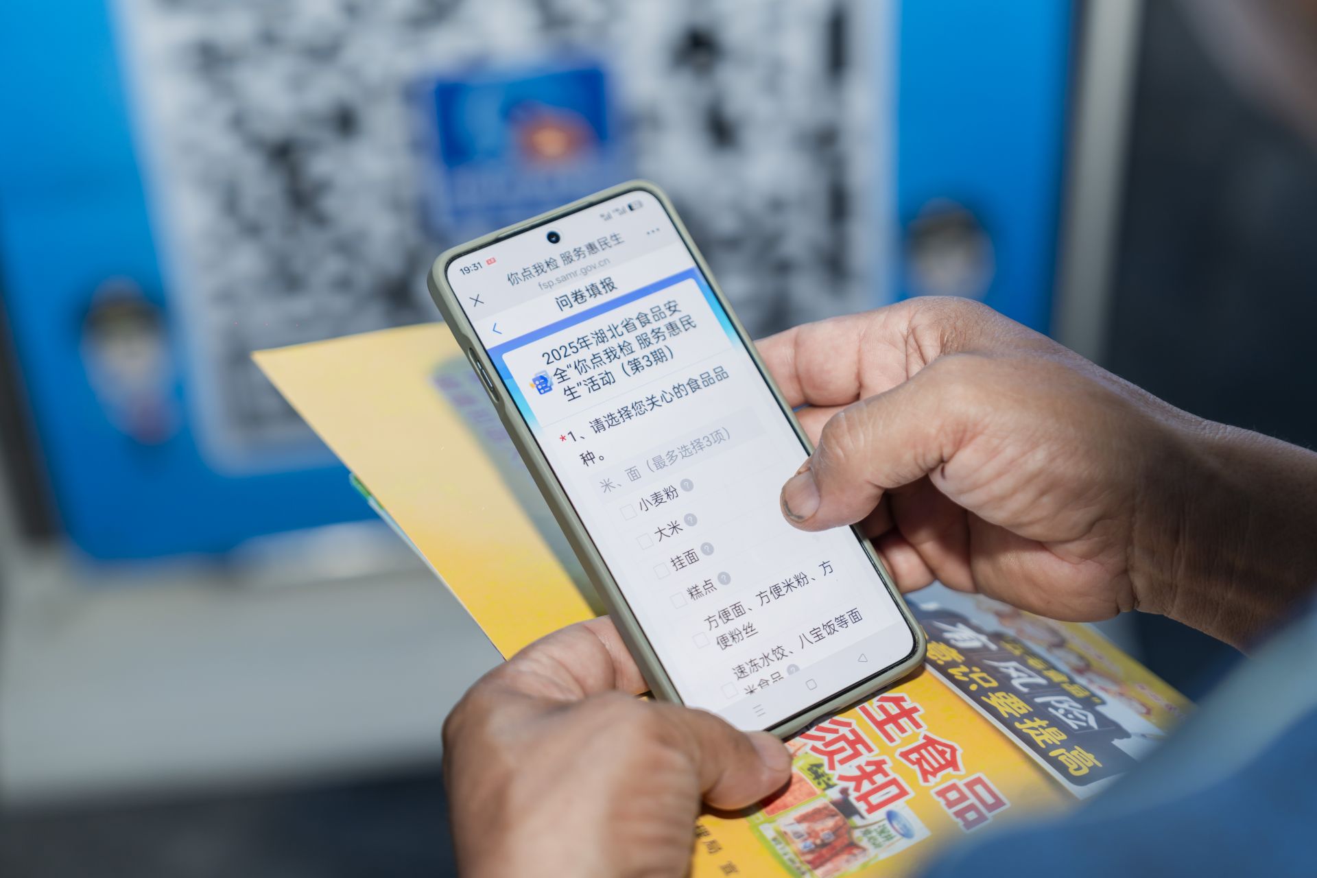 “大叔,您用手機(jī)掃一掃這個(gè)二維碼,就可以參與點(diǎn)選?!痹诨顒?dòng)現(xiàn)場(chǎng),市場(chǎng)監(jiān)管工作人員向來往群眾發(fā)放調(diào)查問卷及食品安全科普資料,并邀請(qǐng)消費(fèi)者通過掃碼進(jìn)入“你點(diǎn)我檢 服務(wù)惠民生”民意征集系統(tǒng),勾選自己關(guān)心的食品種類、經(jīng)營(yíng)場(chǎng)所、檢測(cè)項(xiàng)目。“夏天天氣熱,都愛點(diǎn)外賣,希望你們多檢測(cè)一下”。在問卷征集過程中,不少消費(fèi)者提出比較關(guān)注外賣食品安全。
