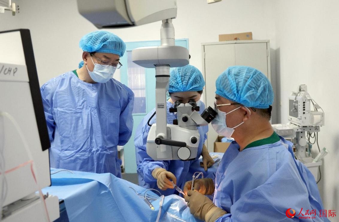中國(guó)專家在為易卜拉欣做白內(nèi)障手術(shù)。人民網(wǎng)記者 管克江攝