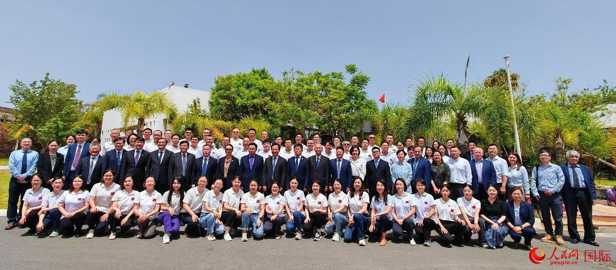 今年7月在摩洛哥首都拉巴特舉行的援摩中國(guó)醫(yī)療隊(duì)派遣50周年系列活動(dòng)上,中摩嘉賓與中國(guó)醫(yī)療隊(duì)隊(duì)員代表合影。人民網(wǎng)記者 管克江攝