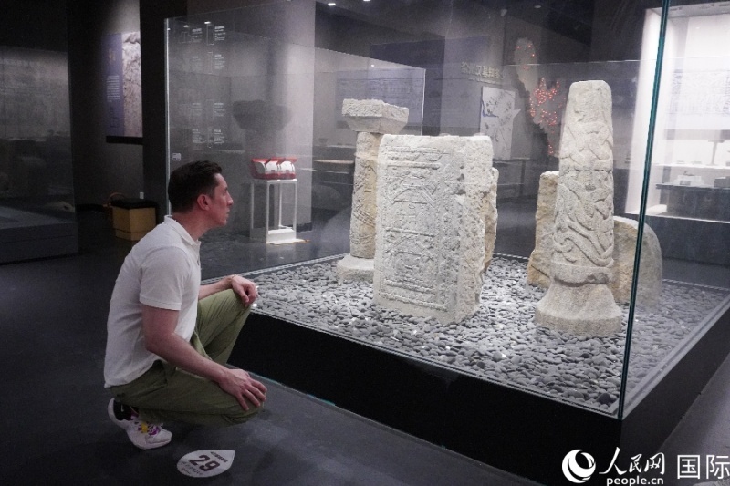 人民網(wǎng)外籍專家湖長明參觀徐州博物館漢畫像石。 人民網(wǎng) 喻亮攝