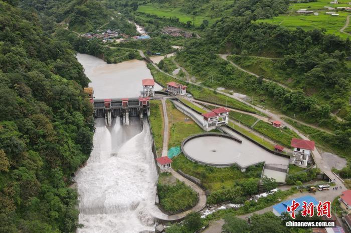8月8日,尼泊爾甘達(dá)基省上馬相迪A水電站。(無人機(jī)照片) 中新社記者 崔楠 攝