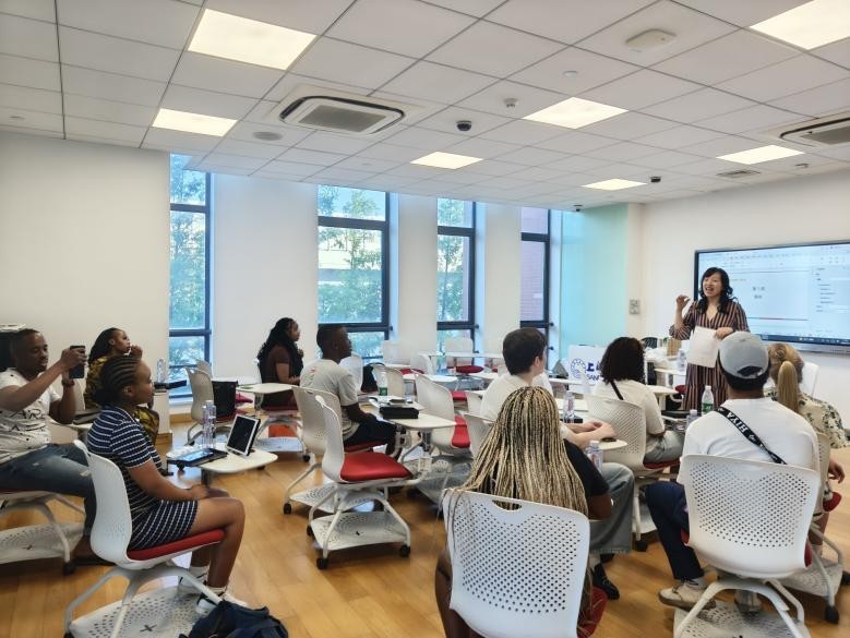 在上海杉達(dá)學(xué)院認(rèn)真聽(tīng)HSK1課的訪華團(tuán)成員。上海杉達(dá)學(xué)院南非中國(guó)文化和國(guó)際教育交流中心孔子課堂供圖