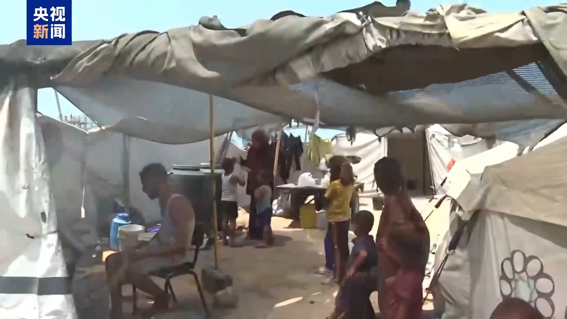 在這個臨時營地,大部分流離失所者居住的簡陋帳篷就是由塑料和布料簡單拼接而成,在烈日炙烤下,帳篷內(nèi)悶熱難耐,但他們別無去處,只能默默地忍受這一切。