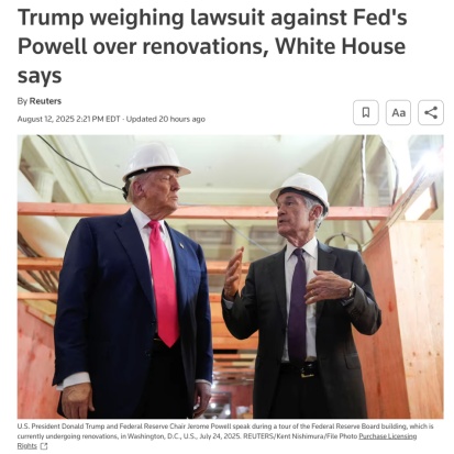 輿論普遍認(rèn)為,特朗普的真正目標(biāo)并非追回聯(lián)儲(chǔ)建設(shè)成本,而是借此放大輿論壓力,尋找迫使鮑威爾提前下臺(tái)的理由。
