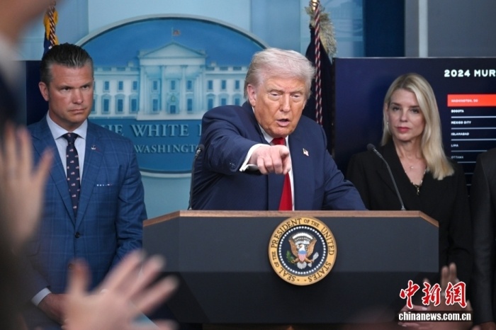 當(dāng)?shù)貢r(shí)間8月11日,華盛頓,美國(guó)總統(tǒng)特朗普在白宮召開(kāi)記者會(huì)。中新社記者 陳孟統(tǒng) 攝