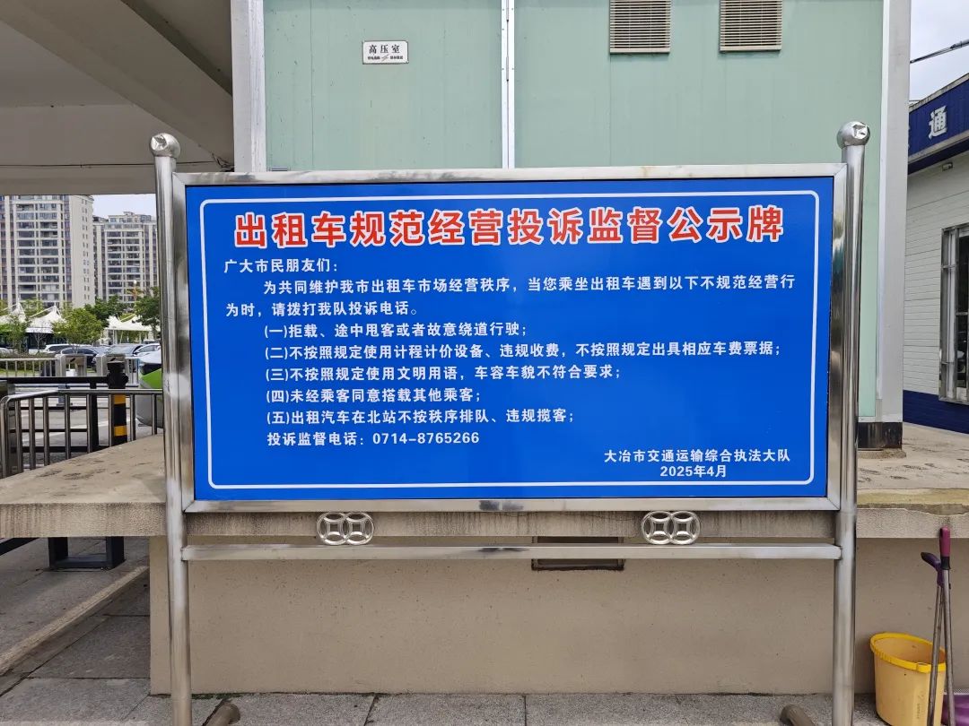 值得注意的是,今年7月,市交通運(yùn)輸綜合執(zhí)法大隊在大冶北站出站口設(shè)置了出租車投訴點,旁有“出租車規(guī)范經(jīng)營投訴監(jiān)督公示牌”,明確拒載、不按規(guī)定使用計價設(shè)備等行為可在此投訴。