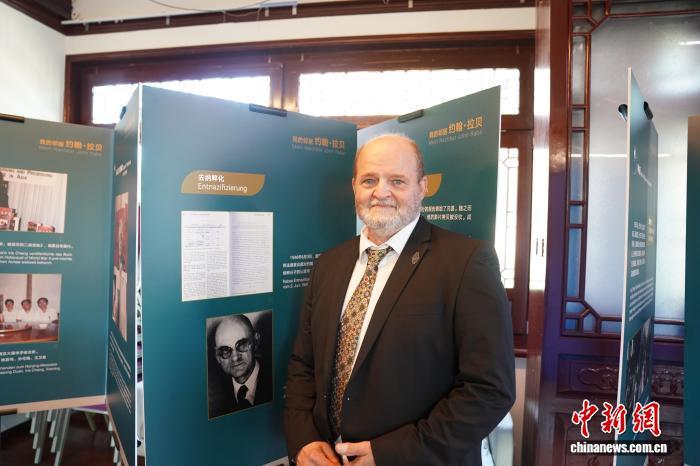當(dāng)?shù)貢r(shí)間8月15日,中國駐漢堡總領(lǐng)館與南京大學(xué)“拉貝日記與和平城市”團(tuán)隊(duì)、德中交流協(xié)會(huì)共同在漢堡舉辦《我的鄰居——約翰·拉貝》展覽。圖為約翰·拉貝曾外孫克里斯托夫·賴因哈特在展覽前留影。 中新社記者 馬秀秀 攝