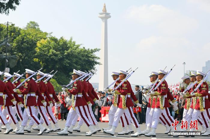 8月17日,印尼儀仗隊參加獨立日慶典。中新社記者 李志全 攝