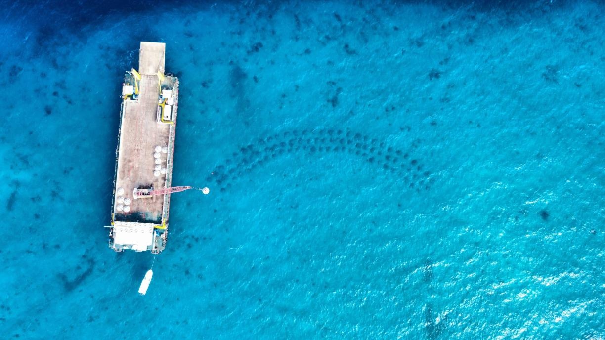中企在海上安裝“珊瑚小屋”。中國港灣供圖
