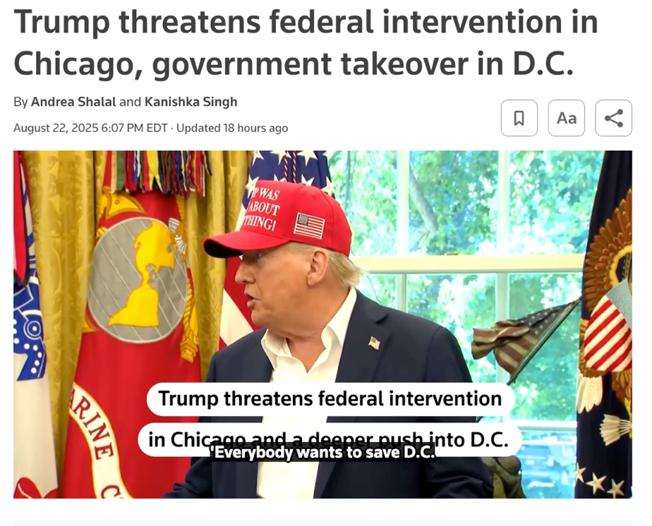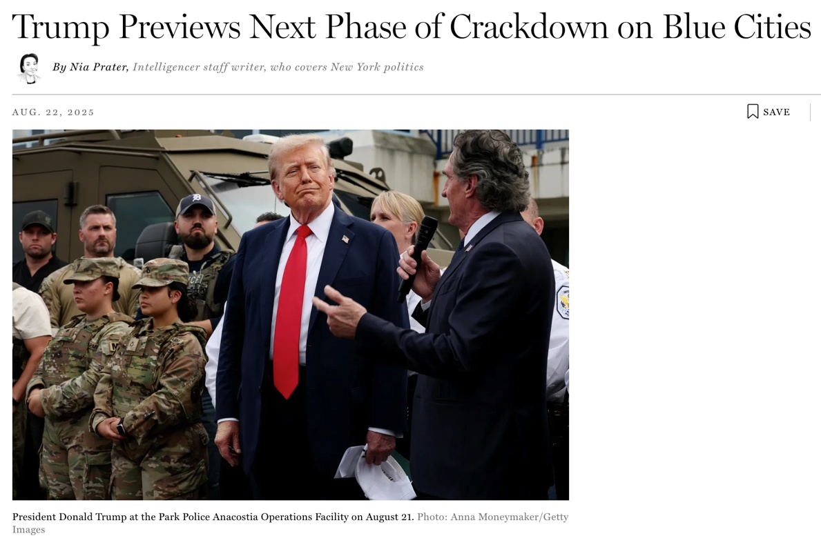 同時,特朗普點名華盛頓、芝加哥、紐約這類由民主黨主政的大城市,意在放大“民主黨治理失敗”的印象。芝加哥常被貼上“槍支暴力與治安崩壞”的標(biāo)簽,紐約既是特朗普的故鄉(xiāng),也是民主黨與主流媒體的象征性舞臺。這些選擇既有象征意義,也能放大政治對比,強化“只有我能恢復(fù)秩序”的選戰(zhàn)話語。