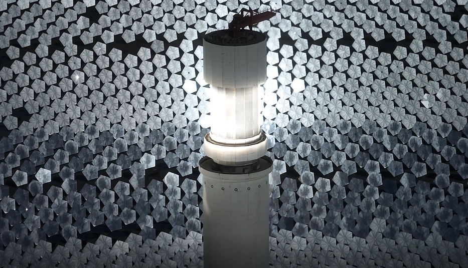 數(shù)萬(wàn)面定日鏡將陽(yáng)光集中反射至吸熱塔。伊吾縣融媒體中心供圖