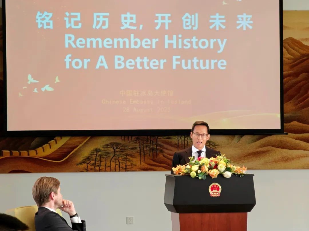 人民網(wǎng)斯德哥爾摩8月29日電(記者殷淼)當(dāng)?shù)貢r(shí)間8月28日,中國駐冰島使館舉辦“銘記歷史、開創(chuàng)未來”座談會(huì)、《里斯本丸沉沒》在冰首映式及酒會(huì)。中國駐冰島大使何儒龍和國際儒學(xué)聯(lián)合會(huì)副理事長鮑德松出席并致辭,冰外交部、冰中文協(xié)、冰中貿(mào)協(xié)、華僑華人及留學(xué)生等近百人出席。