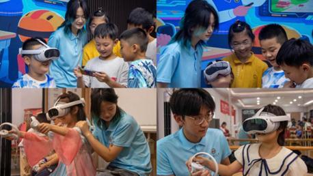 實(shí)踐隊(duì)引入VR技術(shù)開(kāi)展體育活動(dòng),孩子們戴上VR眼鏡后,可在虛擬場(chǎng)景中體驗(yàn)籃球、羽毛球等運(yùn)動(dòng),電子軌跡與虛擬星空讓體育活動(dòng)突破場(chǎng)地限制。隊(duì)員們?cè)谂允刈o(hù),確保孩子們?cè)谔搶?shí)結(jié)合的環(huán)境中安全奔跑、跳躍,額角的汗珠與興奮的呼喊,讓孩子們?cè)谌の吨懈惺苓\(yùn)動(dòng)的魅力,實(shí)現(xiàn)運(yùn)動(dòng)形式創(chuàng)新化、虛擬化、趣味化。