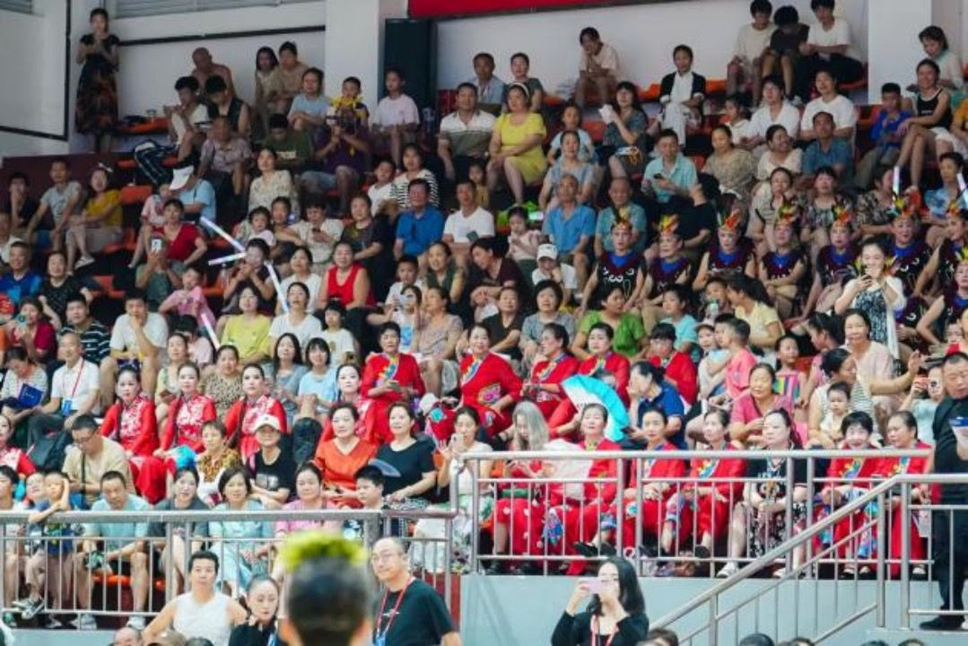 比賽現(xiàn)場,伴隨著《我和我的祖國》《輝煌中國夢》等一首首激昂動聽的旋律,各參賽隊伍輪番登場。隊員們精神飽滿、動作整齊,將民族風(fēng)情、時代氣息與健身元素巧妙融合,用舞步詮釋健康與快樂??磁_上千余名觀眾掌聲不斷,不少群眾舉起手機記錄精彩瞬間,現(xiàn)場成為一片歡樂的海洋。