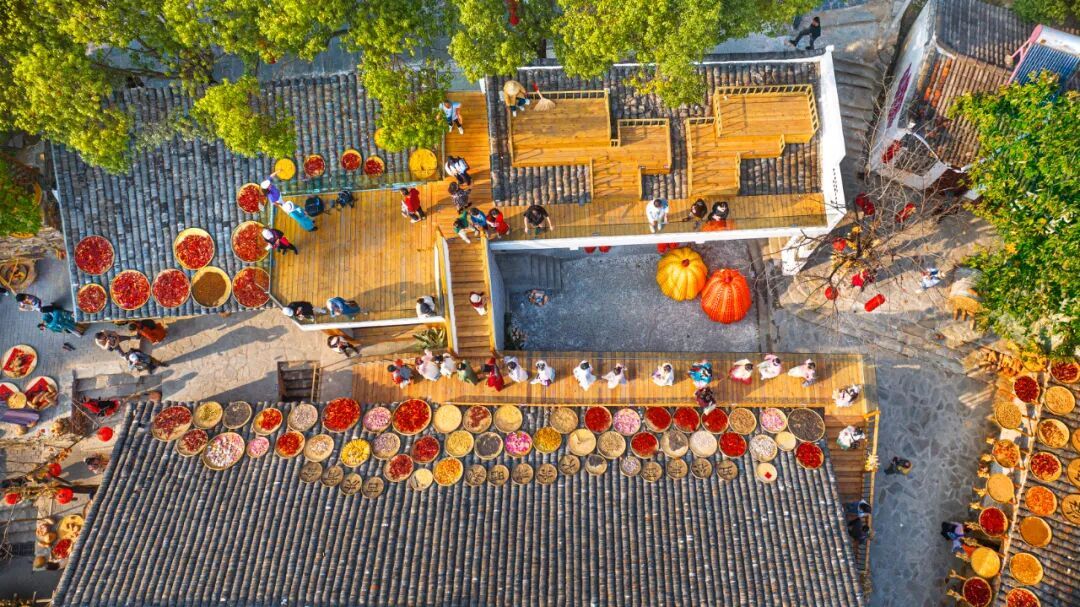 【豐收調(diào)色盤】登高遠(yuǎn)眺,整個古村宛如打翻的調(diào)色盤。辣椒紅、玉米黃、南瓜橙...在青瓦飛檐間鋪展成壯觀的豐收圖卷。最佳攝影點已就位,等您收錄今秋最動人的畫。