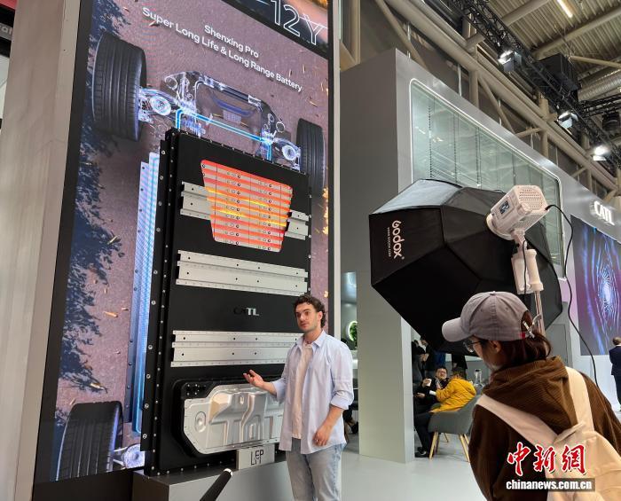 當(dāng)?shù)貢r間9月8日,2025年德國慕尼黑國際車展舉行媒體日。圖為寧德時代神行Pro電池引關(guān)注。中新社記者 馬秀秀 攝