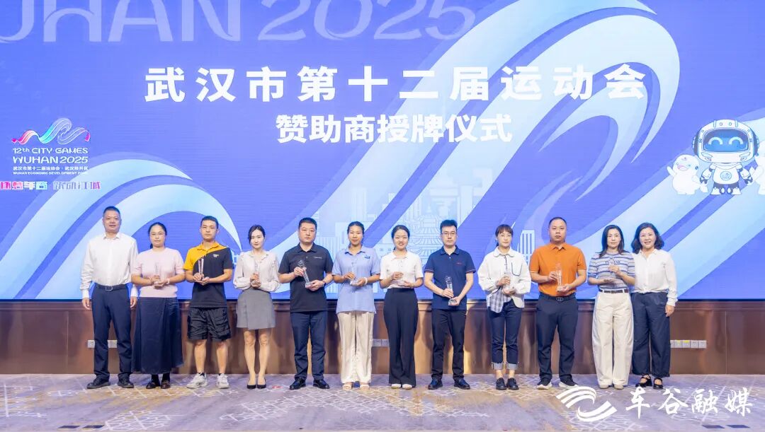 現(xiàn)場,武漢經(jīng)開區(qū)體育局分別與市十二運會總冠名單位嵐圖汽車、高級合作伙伴漢口銀行簽約。市體育局、武漢經(jīng)開區(qū)相關負責人為湖北悅?cè)拼嬈酚邢薰?、中韓(武漢)石油化工有限公司、冠捷顯示科技(武漢)有限公司、江蘇新程(武漢)汽車零部件有限公司、華電湖北發(fā)電有限公司、湖北供銷社、海爾智家湖北分公司、武漢武耀安全玻璃股份有限公司、安能聚創(chuàng)供應鏈管理(武漢)有限公司、普宙科技有限公司等贊助商授牌。