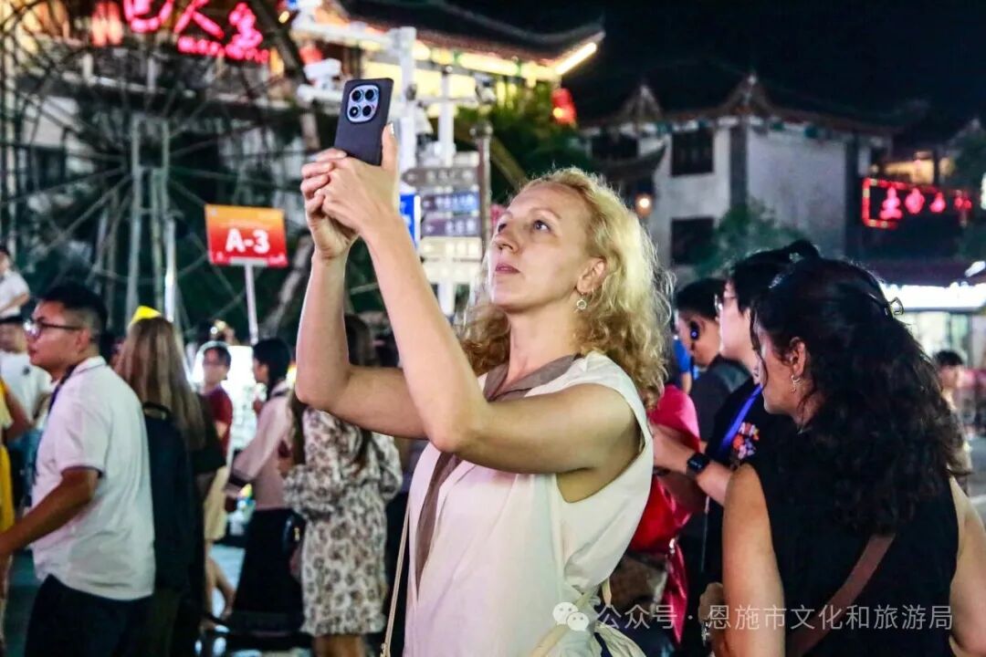 來到恩施市的首站,旅行商團隊走進恩施女兒城。通過古色古香的吊腳樓群、原汁原味的民俗表演和互動體驗,讓外賓們直呼“穿越時空”。圍著篝火跳完擺手舞,來自俄羅斯的代表興奮地表示:“傳統(tǒng)舞蹈的韻律和熱情極具感染力,這種活態(tài)文化傳承比博物館展示更令人難忘!”