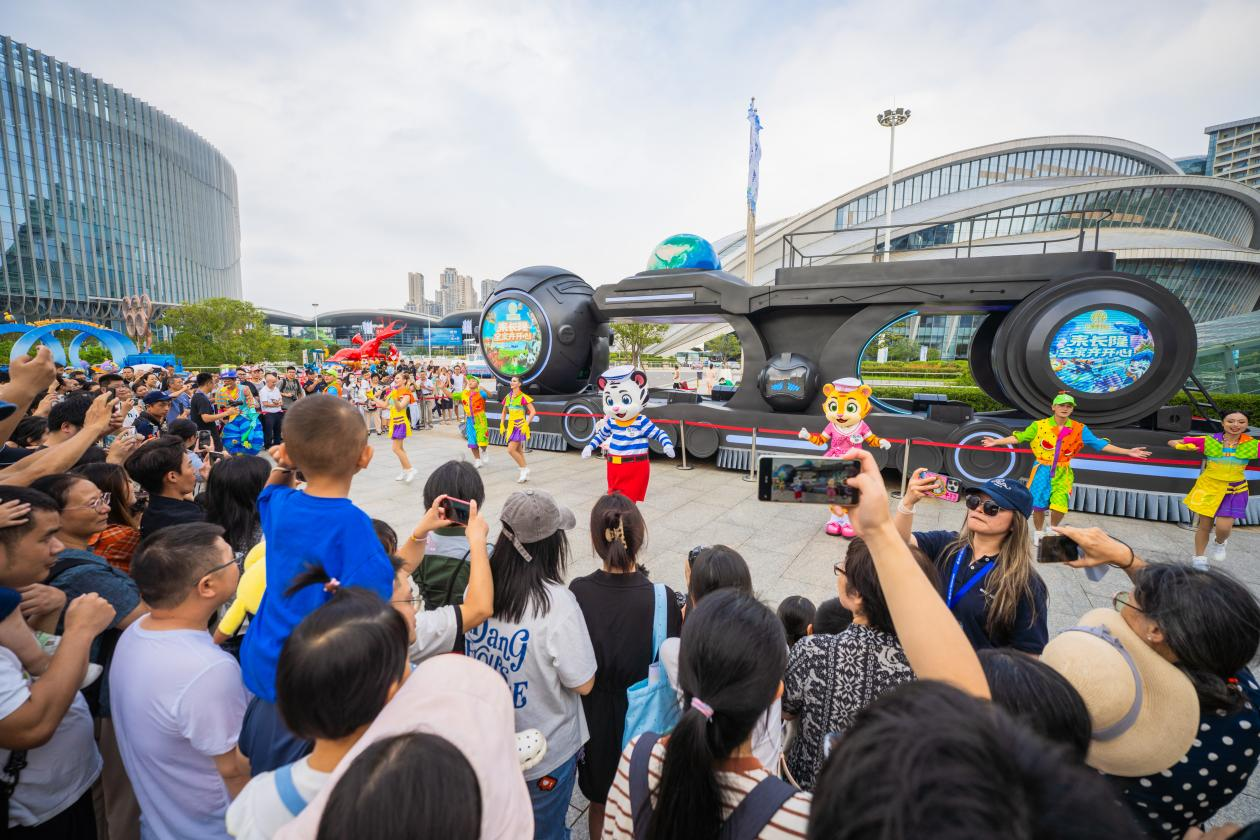 小黃人、卡通虎都來了。9月12日,在室外展區(qū),北京環(huán)球影城特別版狂歡嘉年華掀起一股熱潮。小黃人斯圖爾特、凱文、穿靴子的貓、朱利安國王身穿盛裝,閃亮登場。演員們會向現(xiàn)場小伙伴發(fā)出熱舞邀請,還有教學(xué)。9月13日,長隆集團(tuán)領(lǐng)銜出場的“歡樂大使”卡通虎卡卡、琦琦與粉小琦盛裝亮相,帶來了一場歡樂派對,還有外籍演員熱舞?,F(xiàn)場觀眾直呼:“好熱情”“好活潑”!