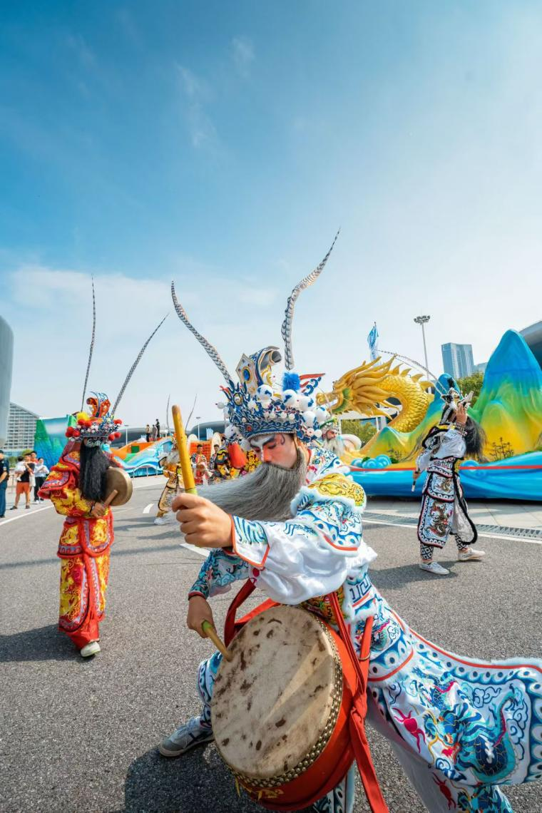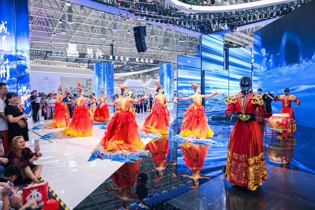 在展館內(nèi)外可以看到,各展區(qū)人頭攢動,在廣東長隆展區(qū),兩點(diǎn)半的演出還沒開始,人流已經(jīng)里三層外三層打圍。伴著強(qiáng)勁律動,外籍演員們還邀請觀眾共舞互動,現(xiàn)場氣氛爆棚。展館內(nèi)部,韓國館、陜西館等展位的熱舞、非遺展演成了焦點(diǎn)。多種多樣的智能設(shè)備體驗(yàn)等,更成為小朋友的樂園。