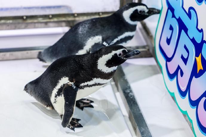 博覽會首日下午,2只體態(tài)優(yōu)雅的麥?zhǔn)檄h(huán)企鵝,在專業(yè)保育員的悉心陪伴下,邁著標(biāo)志性的“搖擺舞步”亮相展區(qū),立即引爆現(xiàn)場氣氛。保育員耐心向觀眾講解企鵝的生活習(xí)性及保護(hù)知識,現(xiàn)場互動氛圍熱烈,小朋友們興奮地踮起腳尖,大人們紛紛舉起手機(jī),記錄下這難得的時刻?!皼]想到能在展會上看到真企鵝!太驚喜了!”來自長沙的游客王先生激動地說道。
