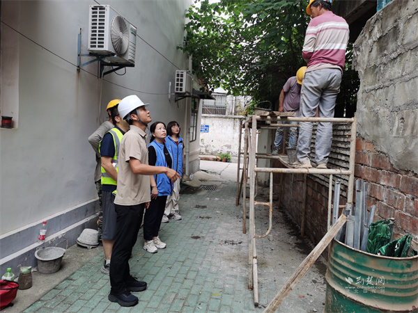 會后,武漢城建第一時間組織專業(yè)人員赴現(xiàn)場勘察,經(jīng)綜合研判制定科學維修方案,明確職責分工與時間節(jié)點。社區(qū)黨委則同步做好協(xié)調保障,一方面向周邊居民細致解讀維修計劃、解答疑問,還組織玻璃廠橫街工會小組成員定期巡查危墻區(qū)域,張貼警示標識、拉設警戒線,勸導居民遠離危險地帶;另一方面與企業(yè)保持實時溝通,確保施工按節(jié)點推進。