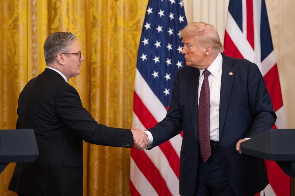 2月27日,美國總統(tǒng)特朗普(右)與英國首相斯塔默在華盛頓白宮出席聯(lián)合記者會。新華社記者胡友松攝