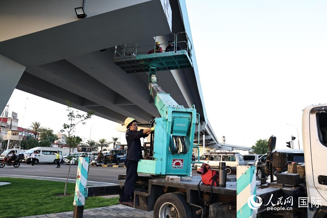 項目工作人員在為通車做最后準備。人民網(wǎng) 伊納斯·易卜拉欣攝