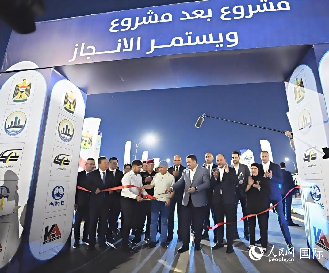 伊拉克總理蘇達尼為項目竣工通車剪彩。人民網(wǎng) 伊納斯·易卜拉欣攝