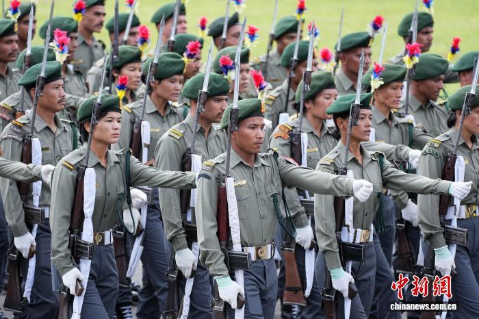 9月19日,尼泊爾臨時(shí)政府舉行憲法日暨國慶日慶?;顒?,紀(jì)念尼泊爾現(xiàn)行憲法頒布施行十周年。圖為尼泊爾武警部隊(duì)接受檢閱。中新社記者 崔楠 攝