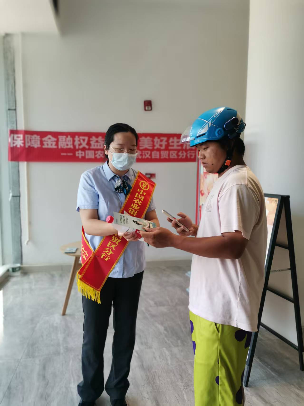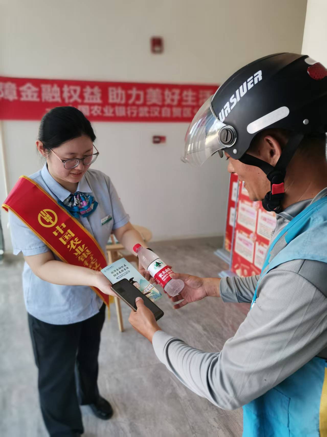 銀行工作人員圍繞個人信息保護、借貸風險防范、理財產(chǎn)品選購、電信網(wǎng)絡詐騙識別等核心消保內(nèi)容,結合典型案例與宣傳折頁,針對市民關心的“如何辨別虛假金融廣告”“怎樣防范銀行卡盜刷”“選購理財如何匹配自身風險”等問題逐一細致答疑。同時,工作人員還貼心為市民送上冰鎮(zhèn)礦泉水,讓專業(yè)消保知識傳遞與暖心服務同步到位。