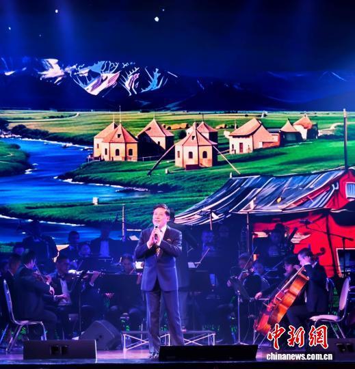 中國(guó)歌唱家魏金棟演唱歌曲《雙腳踏上幸福路》。李映民 攝