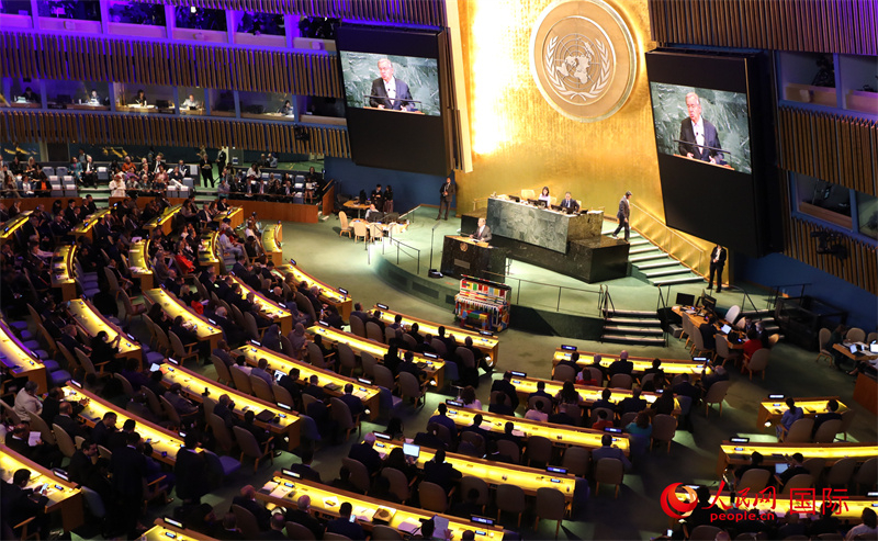 當?shù)貢r間9月22日,在聯(lián)合國大會堂,聯(lián)合國成立八十周年高級別紀念活動舉行。人民網(wǎng)記者 李志偉攝
