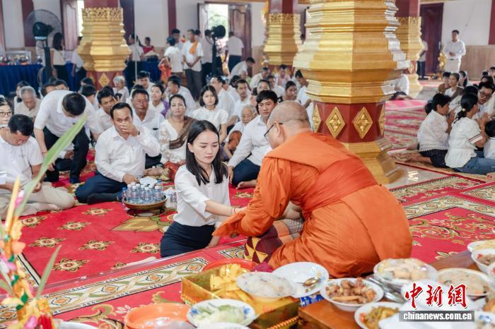 中新社記者日前受邀體驗(yàn)柬埔寨亡人節(jié)傳統(tǒng)習(xí)俗。在金邊1號(hào)公路的一座寺廟里,人們帶著鮮花、蠟燭、香火以及各色供品前來布施禮佛,寺廟里的誦經(jīng)聲從凌晨4時(shí)到中午12時(shí)延綿不絕。人們或席地而坐,虔誠聆聽僧侶誦經(jīng),或排成長龍有序布施。