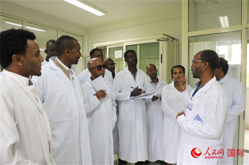 當(dāng)記者在檢測中心采訪時,正好碰上了一次項目培訓(xùn),培訓(xùn)人員來自埃塞俄比亞國內(nèi)各省和地區(qū)?,F(xiàn)場培訓(xùn)氛圍非常好,講師和學(xué)員之間充滿了問答和高度參與的互動,學(xué)員們把講師圍了個里三層外三層,積極地提問。