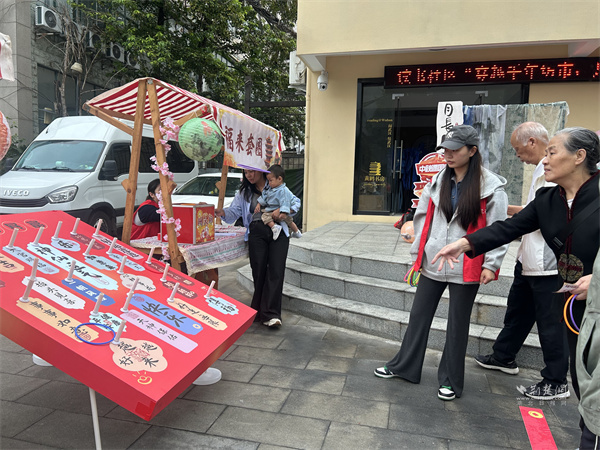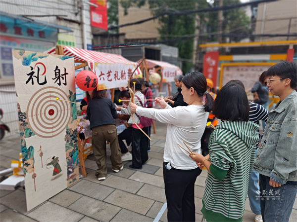 游戲互動(dòng)區(qū)氛圍熱烈?!吧涓膊轮i”攤位前,居民踴躍參與,猜中謎底者可獲贈(zèng)汪玉霞蘇月餅;“投壺納福”吸引眾人一試身手,在趣味中感受古禮韻味;“福來套圈”則準(zhǔn)備了洗衣液、透明皂等實(shí)用獎(jiǎng)品,深受居民喜愛。此外,“六藝禮射”項(xiàng)目讓居民親身體驗(yàn)傳統(tǒng)射藝,在拉弓搭箭間感受古人的尚武精神與禮儀風(fēng)范。