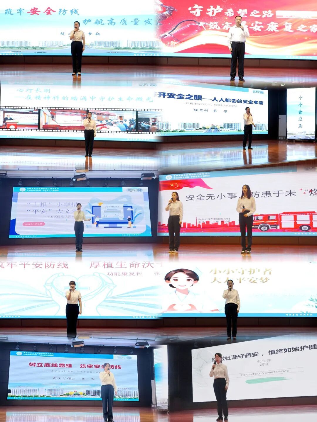 決賽現(xiàn)場氣氛熱烈,10名入圍選手結(jié)合自身崗位實(shí)踐和深刻思考,圍繞“中心”在醫(yī)療安全、護(hù)理安全、消防安全、綜合安全以及人文關(guān)懷等方面的努力與成就,從不同角度、不同層面講述了對“平安醫(yī)院建設(shè)”的理解、實(shí)踐與展望,充分展現(xiàn)了全院職工投身平安醫(yī)院建設(shè)的熱情與智慧。評委組從主題內(nèi)容、語言表達(dá)、儀態(tài)表現(xiàn)、綜合印象等方面對參賽選手進(jìn)行現(xiàn)場打分,最終評選出一等獎1名、二等獎2名、三等獎3名、優(yōu)秀獎4名?!爸行摹鳖I(lǐng)導(dǎo)為獲獎選手頒發(fā)了榮譽(yù)證書。