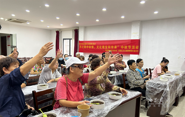 “解碼月餅文化”環(huán)節(jié)則從舌尖上展現(xiàn)中秋韻味?,F(xiàn)場展示了廣式蓮蓉、蘇式鮮肉、京式自來紅等各地特色月餅,講解其象征意義——圓形寓意“闔家團(tuán)圓”,五仁寄托“五谷豐登”的美好愿景,并分享了月餅從唐代“胡餅”到現(xiàn)代多元口味的演變歷程。此外,活動(dòng)還介紹了傳統(tǒng)祭月儀式中的供品擺放、宮燈點(diǎn)燃、祭文誦讀等禮儀細(xì)節(jié),以及浙江錢塘觀潮、安徽徽州舞草龍、廣東潮汕燒塔等地域民俗,讓居民領(lǐng)略到中秋文化在不同水土中綻放的獨(dú)特魅力。