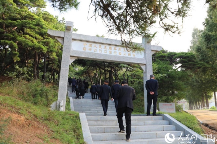 9月30日,中國駐朝鮮使館祭掃順安中國人民志愿軍烈士陵園。人民網(wǎng)記者 劉融攝