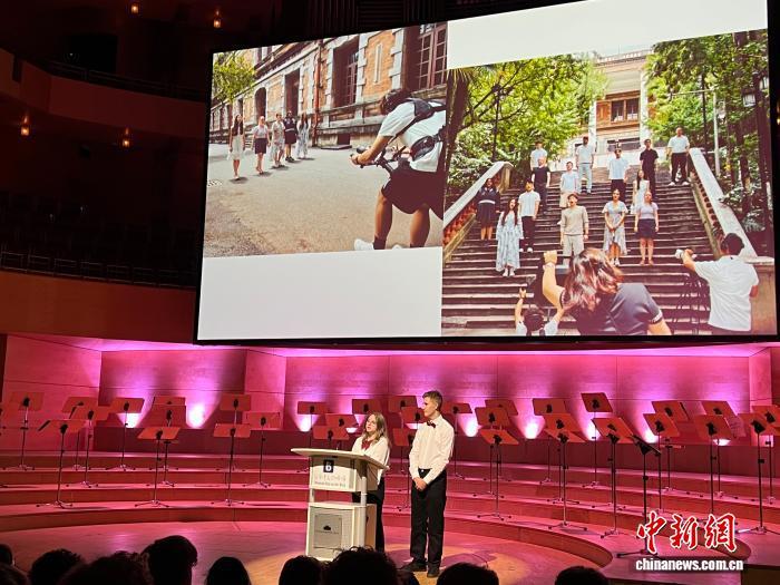 現場播放了合唱團到訪中國的回顧片,多名德國學生分享了在中國的見聞。萊娜告訴記者,在中國的經歷新奇而美妙,體驗到了豐富的中國文化。