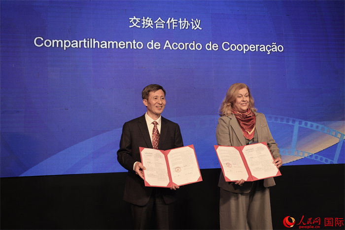中央廣播電視總臺與巴西盒子媒體集團(tuán)在第五屆巴西“中國影視作品展播季”活動中交換影視節(jié)目播出合作協(xié)議。人民網(wǎng)記者 時元皓攝