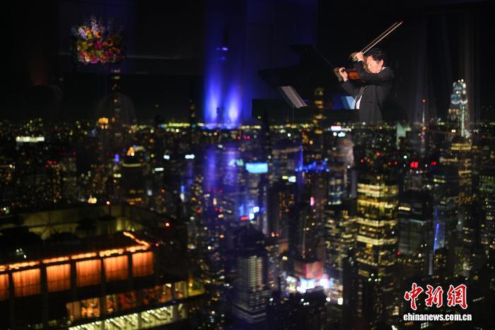 中新社紐約10月7日電 (記者 王帆)當(dāng)?shù)貢r(shí)間6日晚,著名小提琴演奏家呂思清、新生代鋼琴演奏家韋子健在美國(guó)紐約340米高空奏響“聽(tīng)月雅集”中秋音樂(lè)會(huì)。